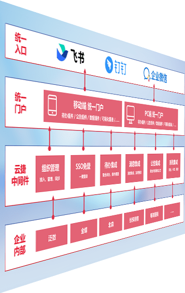 对协作平台提供支持服务,,,,支持企业应用与协作平台对接,,,包含组织同步、、消息集成、、待办集成等。。支持目前主流的协作平台:钉钉、、、企微和飞书。。